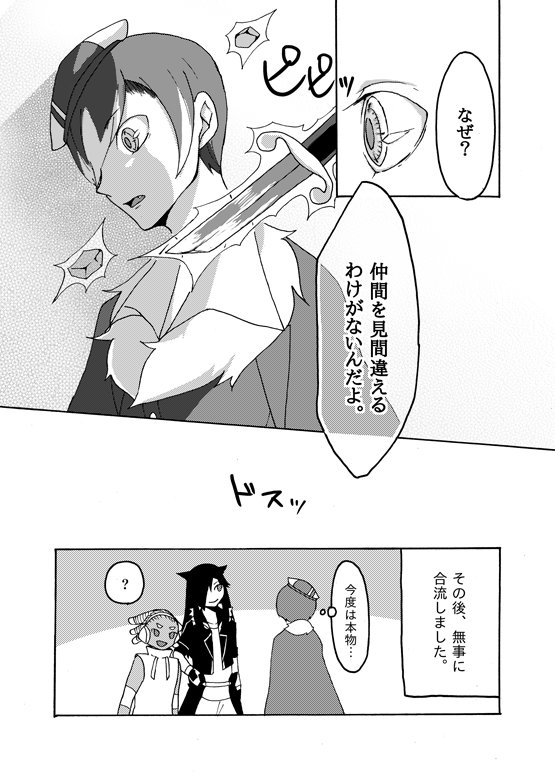 Dungeon 6F おわりのやま VS Enemy No.5 Memo仲間のデフェールさんに扮した敵の奇襲を受けそうになりましたが、難を逃れました。お借りしました: デフェールさん@紅一さん ゴングさん@六月さん 誰キャラ 5番・ヨザリさん 補足: 「僕の隙をつこうなんて〜」→特性がいたずらごころなのでそうそう隙はつかせません。 どう倒したの?→ミラクルアイからのサイコショックで。 磁場や重力を変化させて周辺の物を浴びせるような攻撃をします。 周辺にあったもの→その辺の石、敵が持ってたナイフ(ドロップアイテム) 設定ページに戻る |